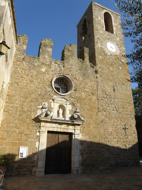 La façana presenta una porta rectangular de pedra blanca amb frontó trencat amb una fornícula amb la imatge de la patrona en marbre, i pilastres toscanes adossades als brancals. Destaca la rosassa motllurada a mitja alçada. L’original consistia en una estrella de David amb un triangle invertit i es substituí per una finestra amb una forma de creu. Damunt la façana hi ha vestigis d’una antiga espadanya. En un dels murs de tanca de l’antic cementiri hi havia diverses sageteres, vestigis d’obra de fortificació medieval. Cap a final del segle XVI se li obriren dues capelles d’estil gòtic tardà amb voltes de creueria, i al segle XVIII una altra capella fonda en el mur de migdia i la portalada barroca i la rosassa.